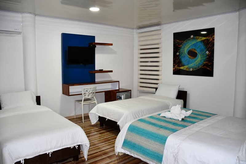 Cómoda y practica habitación con una cama doble y dos camas sencillas, clóset y directv para un descanso superior.